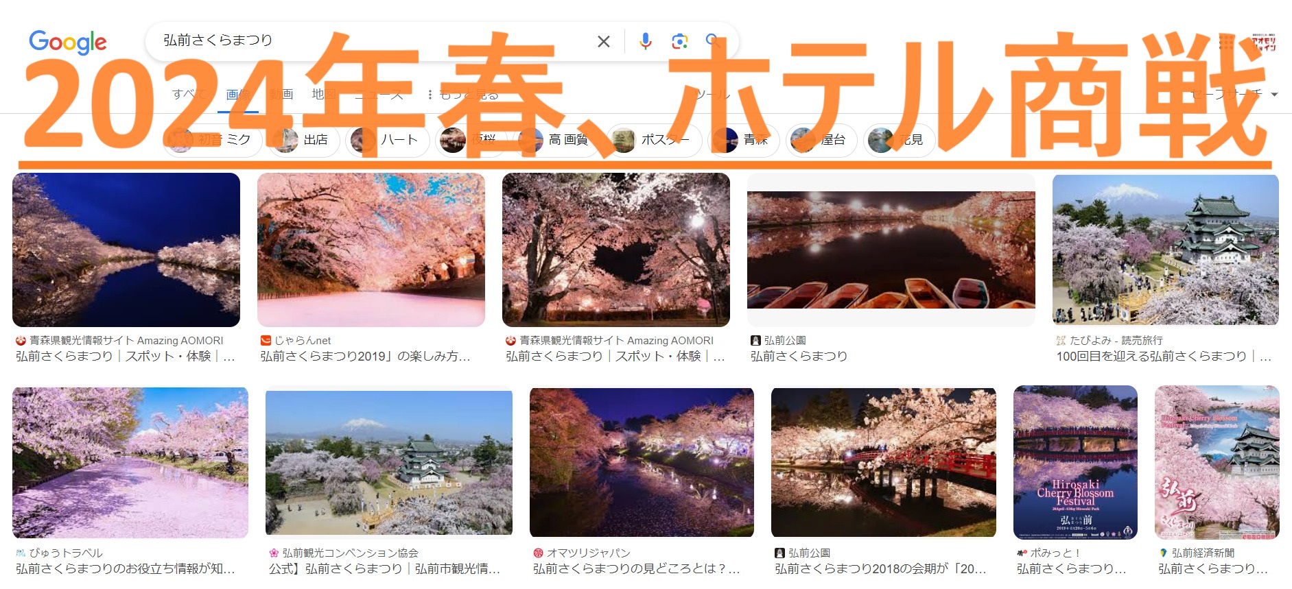 ・ 青森県、特に弘前周辺では4/10~4/20で桜がさくそうです。その頃が人で混み合うんでしょうね~。 開花から満開になるまで、県内ではおよそ7日間かかるらしいです。すると4/20辺りが満開かもしれません🌸 じゃあ弘前めがけて観光客が押し寄せるとして、すでにどれくらいの人がホテルを予約しているのでしょうか?