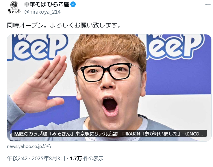 『地元でお馴染みのひらこ屋さん、まさかHIKAKINと並んで店を出すとは思わなんだ』