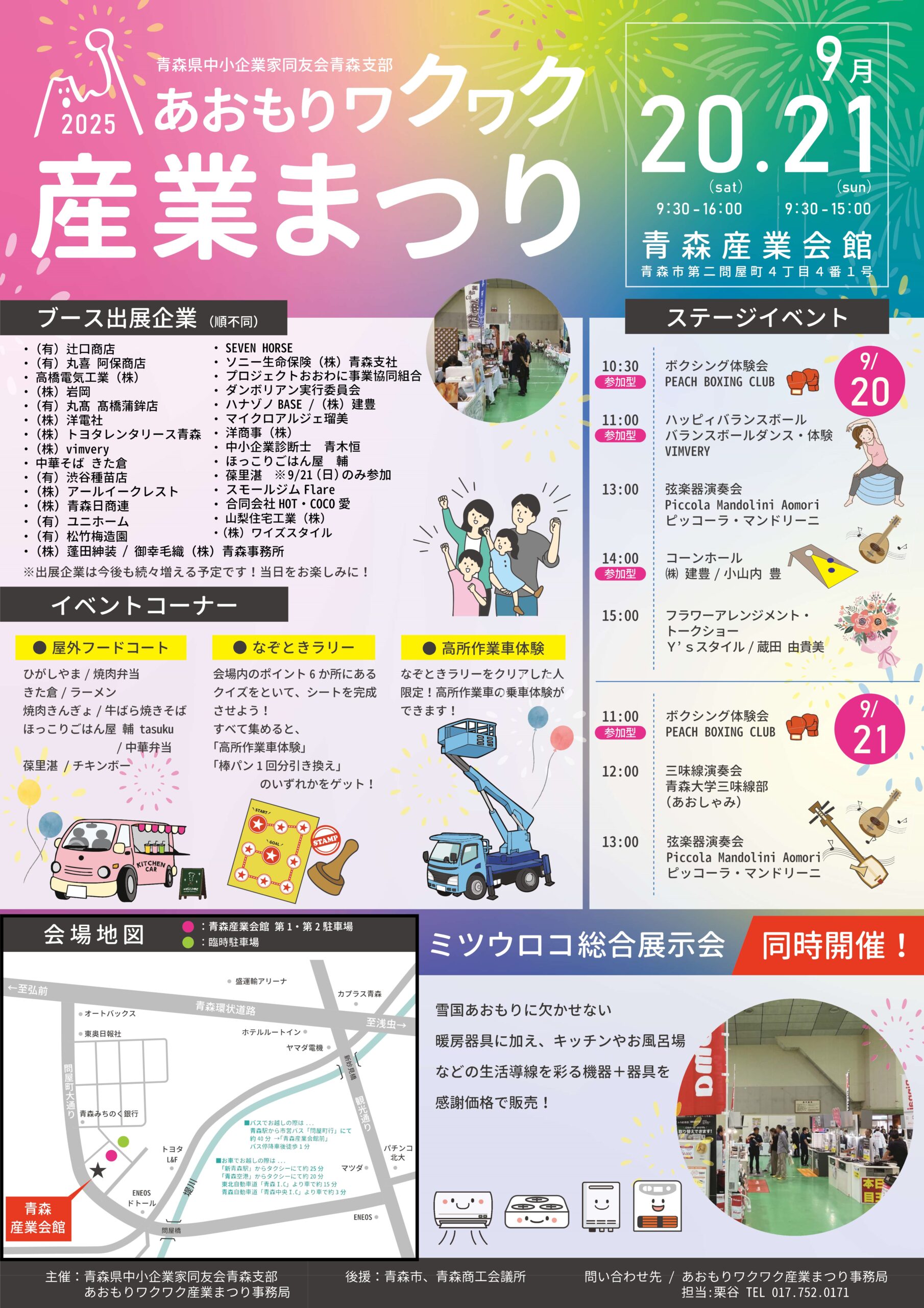 地域企業・グルメ・体験・ステージが一堂に会する青森の産業イベント「あおもりワクワク産業まつり」が今年も開催!家族で一日楽しめます。