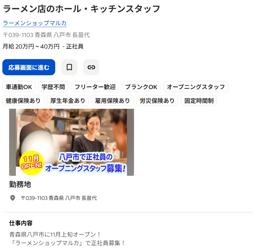 ラーメン店のホール・キッチンスタッフ – 〒039-1103 青森県 八戸市 長苗代 – Indeed.com