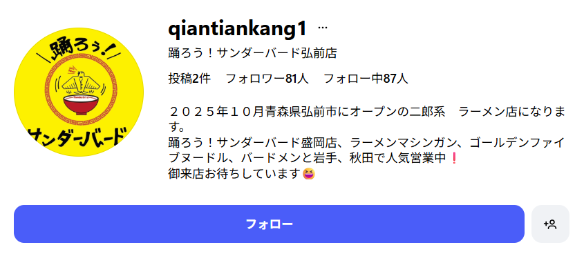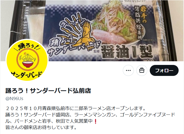 X(旧Twitter)踊ろう!サンダーバード弘前店 @N96Us