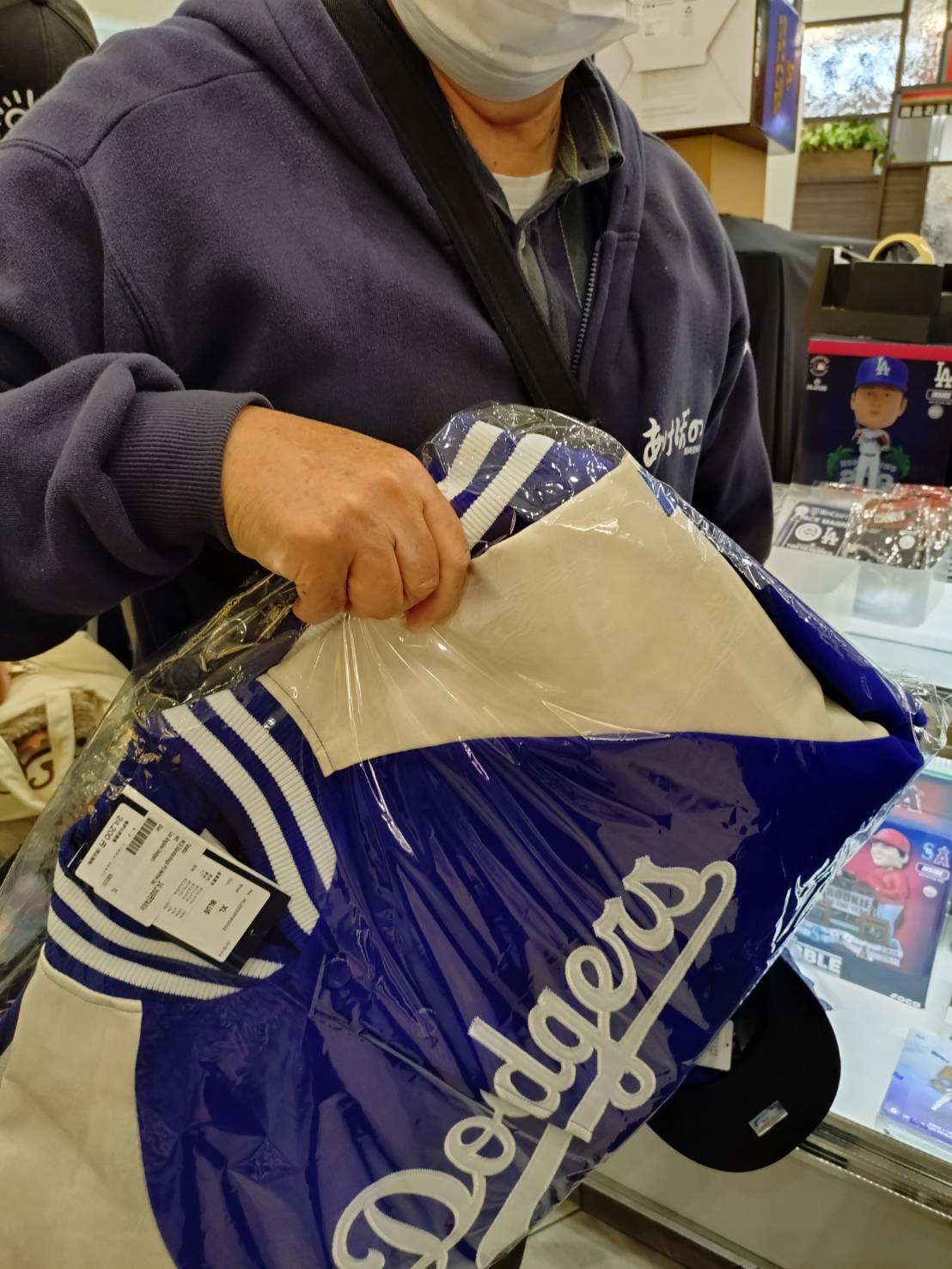 このポップアップストアは、MLB公式グッズの輸入販売を手がけるセレクション・インターナショナルが主催。東北最大級の売り場面積を誇り、約300種類のグッズが並ぶ。十和田から来たご夫妻に話を伺うと、「このイベントがあると聞いて、朝6時に十和田を出発し、エルムの開店時間である9時に駐車場へ到着しました」とのこと。昔からの野球ファンで、お孫さんも野球をしているそうです。今回はプレゼントではなく自分用として購入され、総額はおよそ3万5,000円になる見込みです。