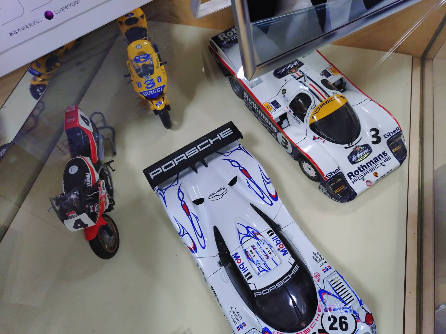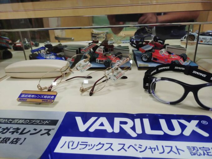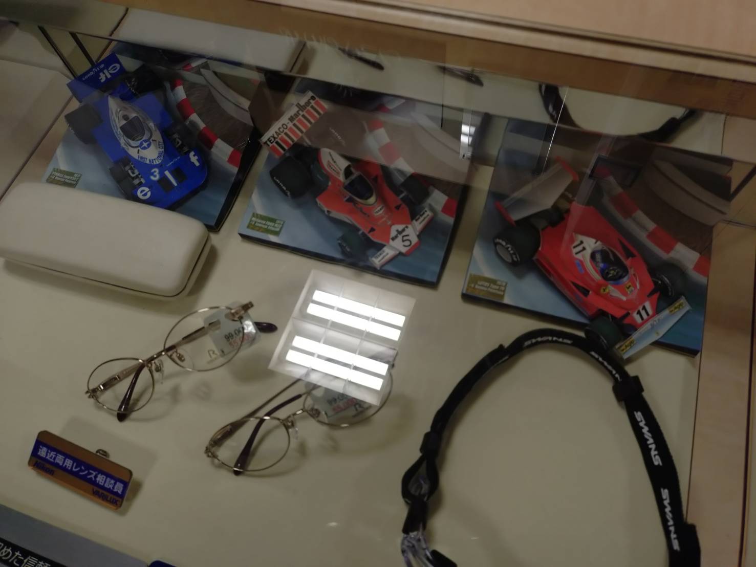 ショーケースの中にはメガネと一緒にラジコンや車の模型がたくさん並んでいました!
