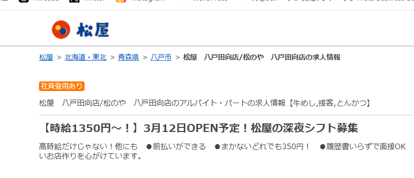 松屋 八戸田向店のアルバイト・バイト求人情報|【タウンワーク】でバイトやパートのお仕事探し