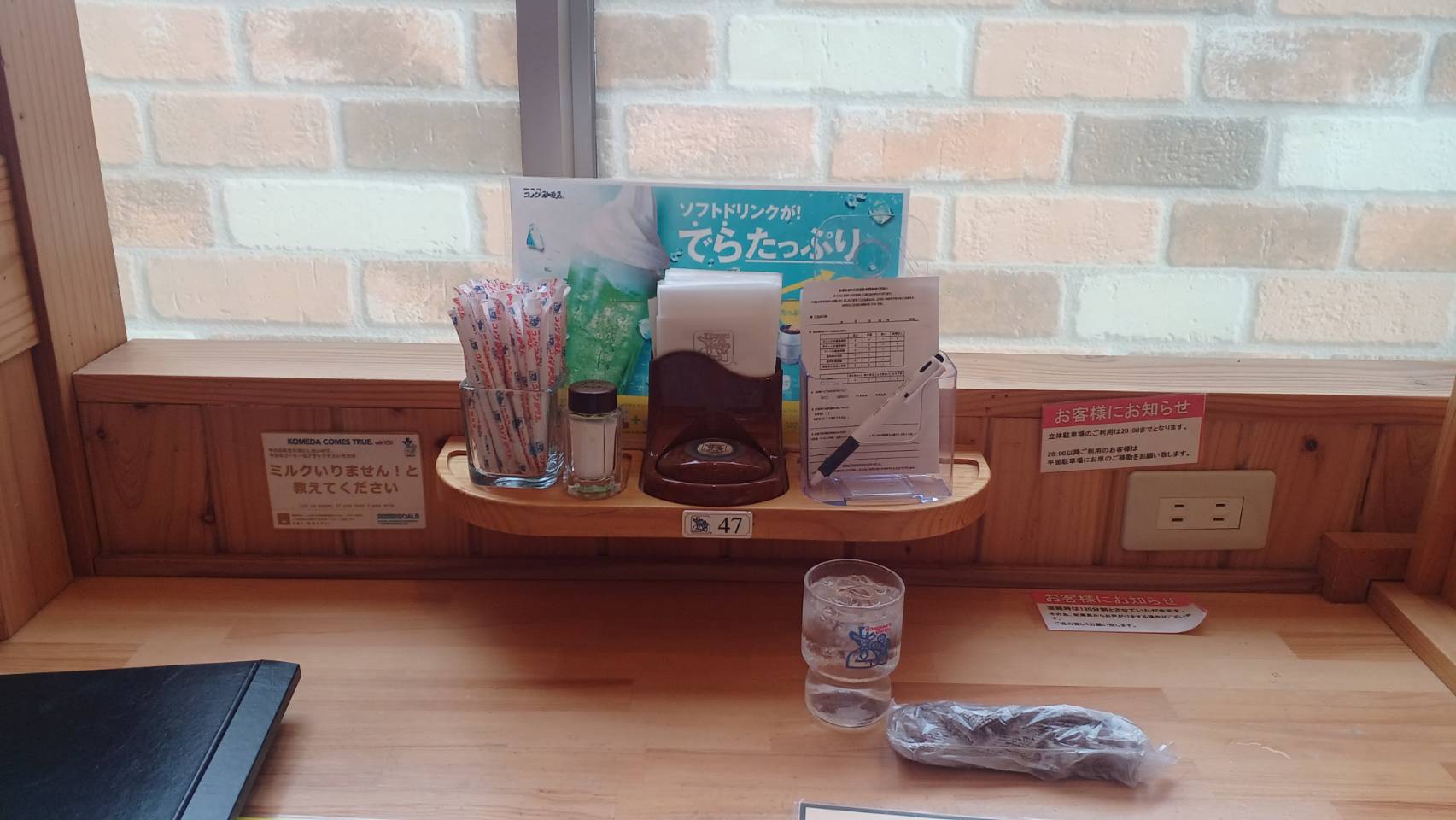 Wi-Fiは非対応ですが、目視したところ、店内に電源が2か所あり、ちょっとした作業にも使えます。