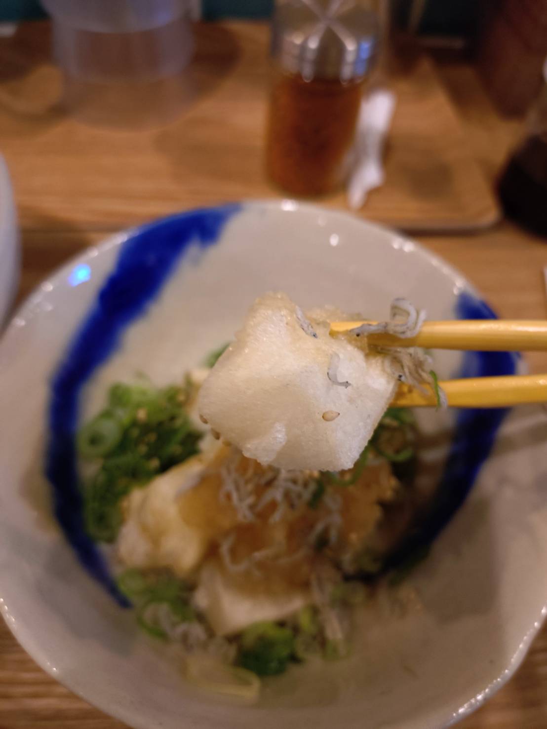 そして後から腹がすきそうだったこともあり揚げ餅じゃこおろしも追加注文しました。一足先に正月気分を味わおうか?