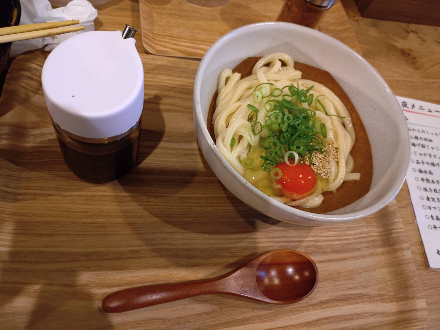 そしてメインの釜揚げうどん。しっかりと卵と馴染ませて食べたいよねと思いながら、たれを上からあっさりかけるのが良いでしょう。そして落ち着くしっとりとした味わい。