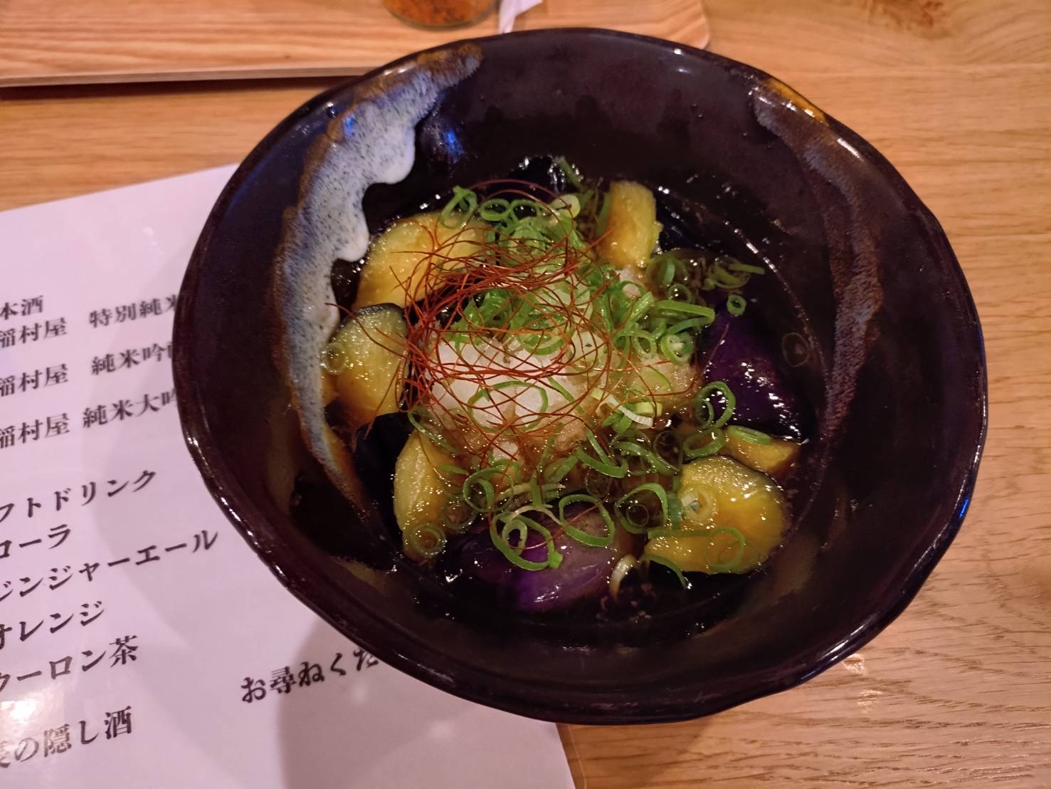 とりあえず今回は釜揚げうどんをチョイスしつつ、夜に来たので夜メニューが頼めるじゃないか!ということで、茄子の揚げ煮を選びました!茄子が好きなんですよ。