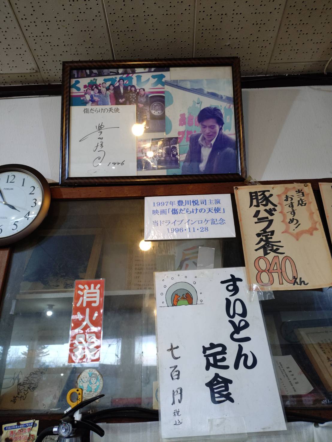 基本的に外側に該当はなく、のぼりが立っているだけ。こういう感じなので本当に営業しているか分かりずらいのは確か。でもやってますよ! 営業58年の中で様々なことがあったでしょう。それらのことをすべて、このお店にしみついているわけです。