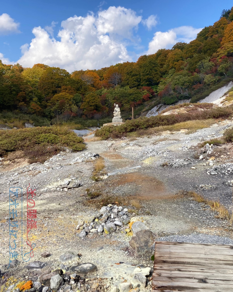 奪衣婆たちの石像のある太鼓橋を越えたら、そこは本当に綺麗な場所だった。浄土ってこんなとこ?秋晴れの空、紅葉した木々、白い土壌の大地。そして目の前に広がる湖。(宇曽利山湖)今まで来たことがなかったことをひどく後悔した。今月いっぱいで恐山は閉山ということもあり、ひともまばら。めちゃ恵まれたシチュエーション!