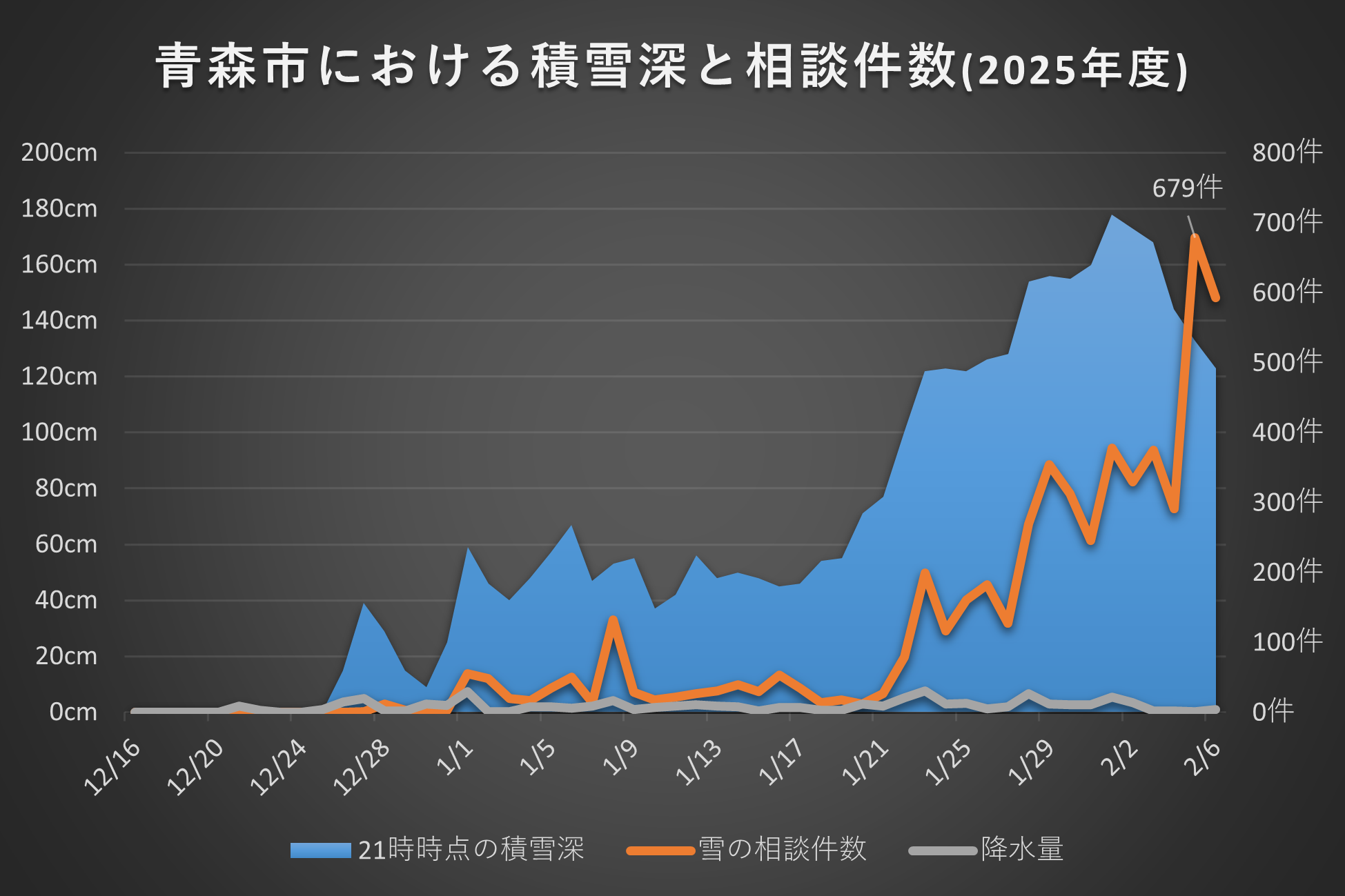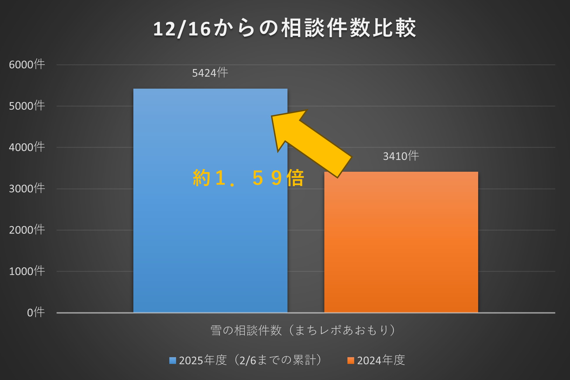 青森市の「まちレポあおもり」における雪の相談件数が、2/5・2/6で急増しました。